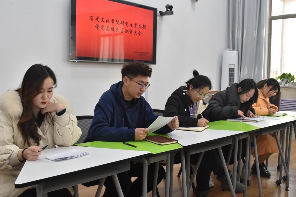 12月16日下午三点,工口动漫 研究生党支部在文史楼505会议室召开党员大会。为深入落实全面从严治党要求,进一步加强我校基层党组织建设,提升党支部建设规范化水平,充分发挥党支部战斗堡垒作用,研究生党支部根据学校《党支部评星定级管理办法》《党支部建设规范提升工作方案》要求并结合支部实际,召开党员大会,全体党员和群众代表对党支部工作和发挥作用等情况进行测评。