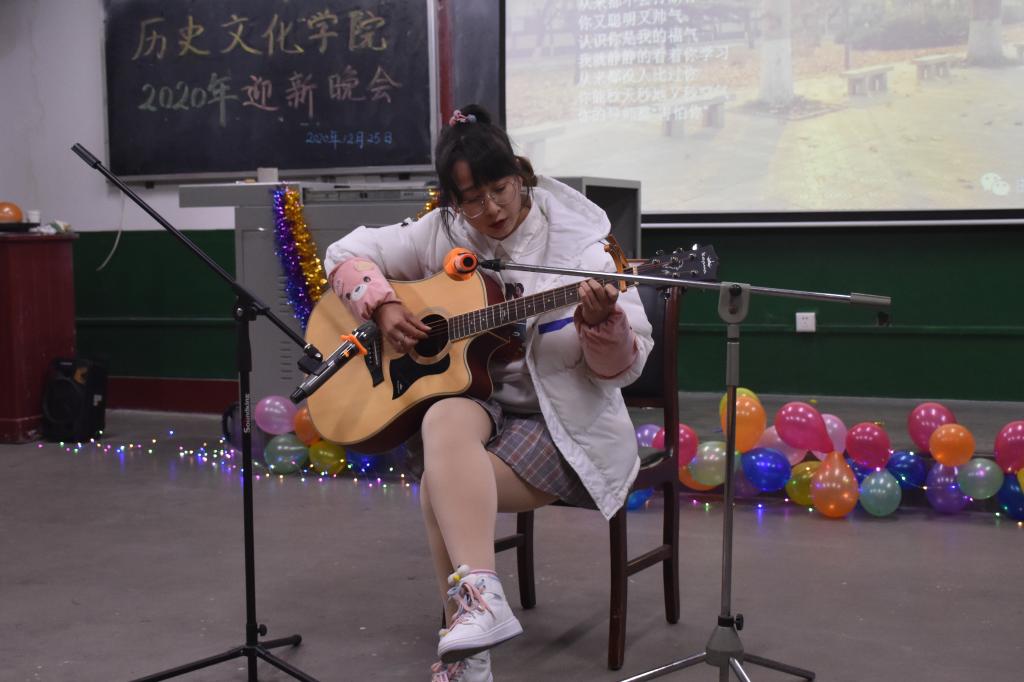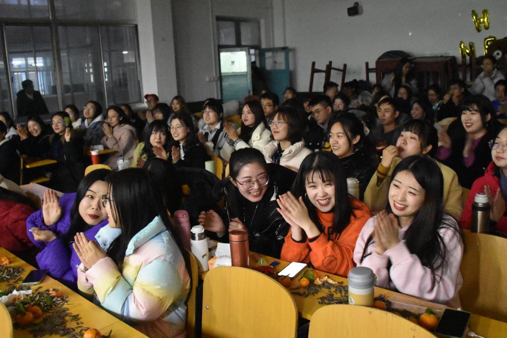 当晚,孙锋、王法强、闫浩、谢经虎、韩锋、张俊成、王静等老师出席晚会。晚会共有来自学院研究生精心准备的12个节目,采取线下与线上相结合的方式,内容丰富多样。进场时,师生需经过体温检测。随着强劲的鼓声响起,晚会在激情动感的开场舞《Wannabe Milk》中拉开了帷幕。一首吉他弹唱《我就静静的看着你学习》,带我们回忆了初见曲园的记忆。诗朗诵《木铎振声,齐颂六五》为曲园送上最真挚的生日祝福,令人动容。相声节目《论捧逗》令人捧腹,接下来,歌曲《阿刁》婉转悠扬、《多想在平庸的生活拥抱你》深情款款、《大鱼》余韵悠长、说唱歌曲《烈火战马》表达了拳拳爱国心。“击鼓传花”的游戏环节中,同学们踊跃参加,进行自我介绍或才艺展示,并为观众送上了新年祝福,谢经虎老师献唱的《明天你是否依然爱我》,赢得了满场的掌声。2019级研究生会学生干部带来的歌舞《乘风破浪的哥哥姐姐们》反转不断,观众们掌声连连,晚会在大家的欢笑声中落下帷幕。