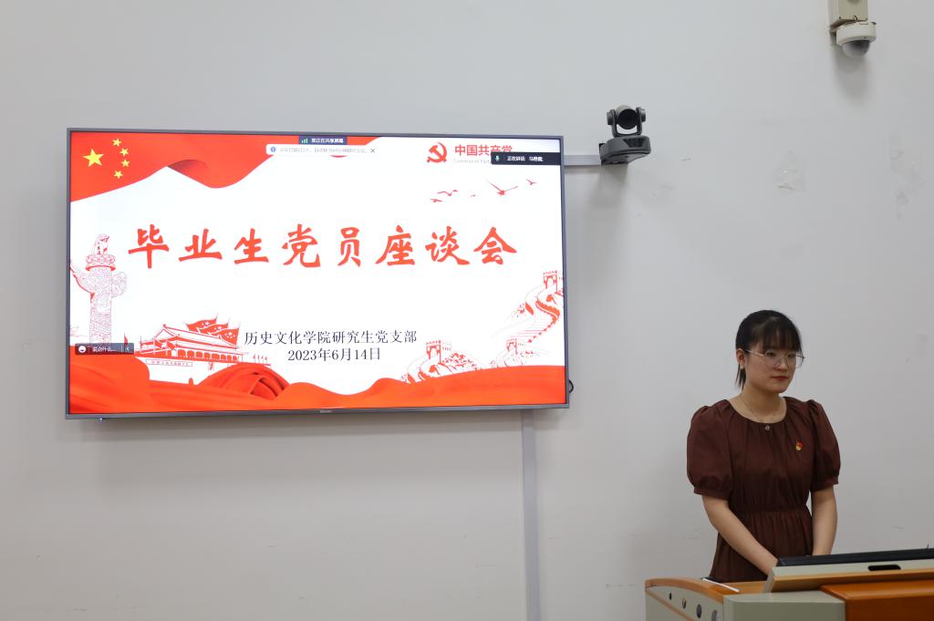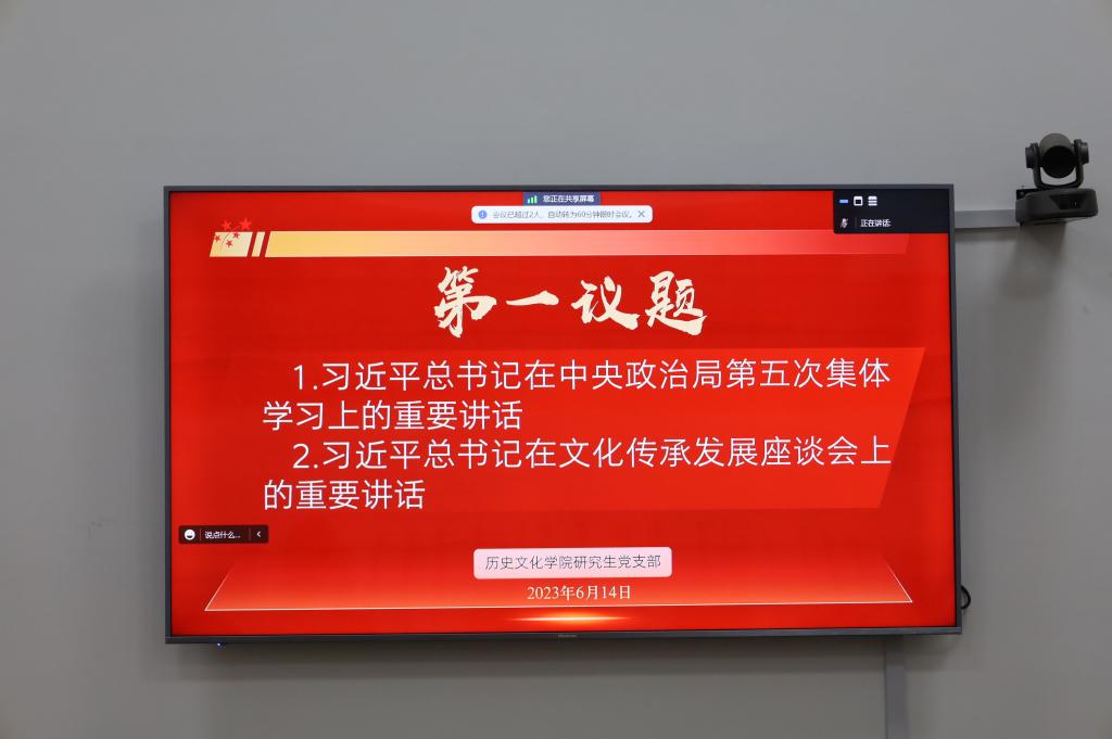 2023年6月14日下午,工口动漫 研究生党支部在文史楼505会议室召开毕业生党员座谈会主题党日活动暨学习贯彻习近平新时代中国特色社会主义思想主题教育第三次集中学习研讨。部分不在校党员以腾讯会议形式线上参会。会议由组织委员马艳霞主持。