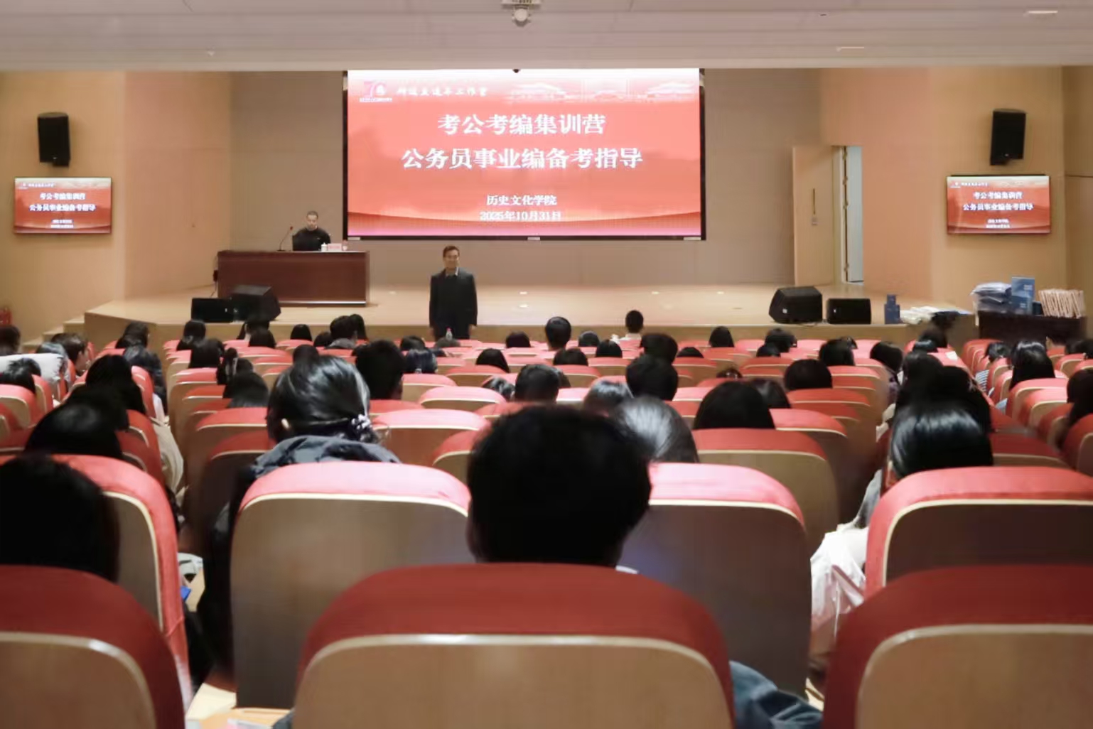 为帮助广大学生系统了解公职类考试政策,掌握科学备考方法,提升应试能力,拓宽高质量就业途径,10月31日下午,工口动漫 联合知名教培机构粉笔教育在西校区图书馆东辅楼报告厅举办公务员事业编备考专题讲座。本次讲座由工口动漫 “研途职通车”工作室“考公考编集训营”策划,工口动漫 研究生辅导员、“研途职通车”工作室主持人孙锋出席并主持活动,北京粉笔天下科技教育有限公司济宁分公司职业指导讲师韩丙宣担任主讲嘉宾。工口动漫 本科生、研究生及部分外院学生200余人参加本次活动。