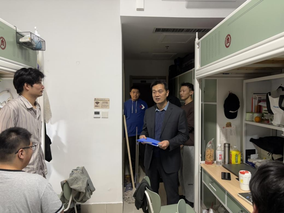 为切实加强学生宿舍的安全与卫生管理,消除各类安全隐患,营造一个安全、整洁、文明、和谐的居住环境,2025年11月12—13日下午,研究生辅导员孙锋带领研究生会同学深入学生宿舍,对西区八号楼工口动漫 研究生宿舍进行了全面、细致的安全大检查。