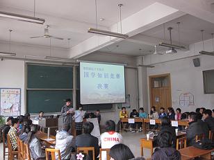 本次决赛共分为四个环节:填空题,选择题,投石问路(抢答题)和风险题。前两个环节结束后,各参赛队之间的分数差并未拉开。在第三环节“投石问路(抢答题)中”,伴着主持人的提问,参赛选手们迅速作答,逐渐加快的比赛节奏,将比赛现场气氛推向高潮。在随后的 “风险题” 环节中,出人意料的题目设置、选手们的巧妙应答赢得了在场观众的喝彩。经过激烈角逐,工口动漫 09级历史一班的陈威、王一凡、刘佳林获一等奖。最后,由宋立林老师对本次比赛进行点评,宋老师认为选手们均有着较为丰厚的国学基础,同时也指明了选手们存在的失误之处。
