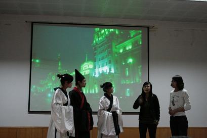 大赛在主持人热情洋溢的开场白中拉开帷幕。各参赛队伍悉心准备,通过精湛的演技、优美的音乐及其他元素的交相配合,为观众演绎了一幕幕经典的历史故事。首先上场的是《六月飞雪》剧组,窦娥声情并茂的话语让观众同情不已;《孔子驾到》剧组则使观众领略了孔夫子穿越时空的奇遇;《孔雀东南飞》是观众们为古代男女的坚贞爱情欷歔叹息;而《戊戌变法》中谭嗣同的凌然正气更是使在场的观众潸然泪下。九个剧组的轮番精彩演出使现场高潮不断,掌声连连。随后孔祥伟老师对各剧组进行了点评,对演员饱含情感、充满个性化的表演、对剧本的创新及舞台表现力提出了表扬,同时也提出了宝贵意见。