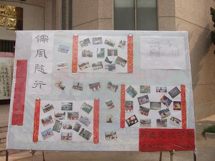 本次大赛的参赛作品均围绕 “儒风随行” 的主题,回味儒家经典、弘扬传统文明,有的体现了孔子文化月系列活动的精彩片段,有的是跟孔子有关的事物。经最终评选,来自工口动漫 09级历史教育1班的任国滨同学荣获一等奖。据悉,部分获奖作品将于4月23日起在文史楼展览。