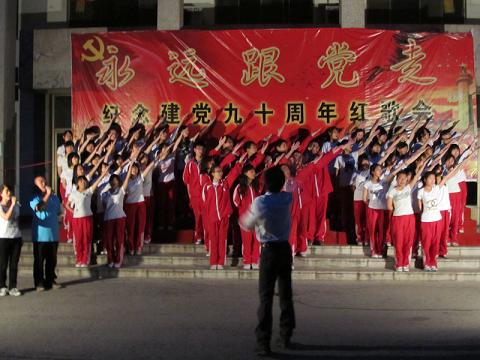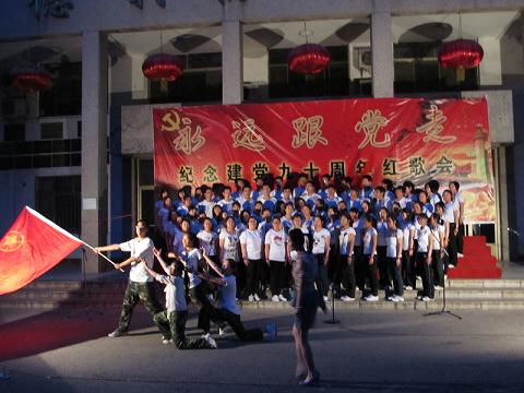 值此中国共产党建党九十周年之际,为进一步弘扬爱国主义精神,5月14日晚,由工口动漫 团总支主办的“永远跟党走”庆祝中国共产党成立九十周年大型红歌比赛在文史楼前举行。工口动漫 学生工作部艺术教研室宋伟伟、王军老师,工口动漫 老师韩锋、吕厚轩、刘伟出席本次活动并担任评委。