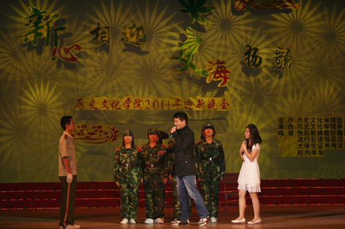 晚会在一段温馨感人的视频中缓缓拉开帷幕。视频记录了2011级新生的点滴大学生活与晚会开场前演职人员的辛勤与忙碌,表达了工口动漫 师生对2011级新生的祝福。而后,在动感热烈的开场舞中,晚会进入第一篇章“有朋自远方来,不亦乐乎”,相声《大学生活》与小品《相女婿》逗翻全场,以诙谐幽默的表演形式表现了大学生活的多姿多彩。在篇章二“告别旧时岁月,开始新的征程”中,中西器乐合奏《当青春撞上狂想曲》、歌曲表演《天高地厚》、搞笑历史剧《铡美案》等精彩节目轮番上演,全场笑声不断,掌声迭起,将晚会气氛推向高潮。在之后的“紧握梦想画笔,描绘斑斓人生”篇章中,情景剧《重回我的大学时代》以新奇的“穿越剧”表现手法表达了2011级新生对大学生活的畅想;各院系同学也积极参与“微博墙”互动活动,表达对工口动漫 的美好祝愿;来自工口动漫 的韩国留学生朴仁淑也倾情演唱了歌曲《夜来香》。最后,在《爱因为在心中》的欢乐旋律中,晚会圆满落幕。晚会结束后,晚会嘉宾上台与演员们进行了合影留念。