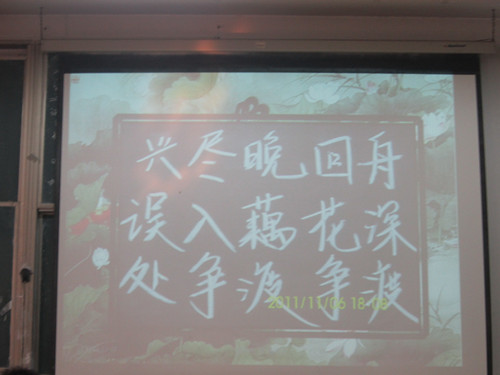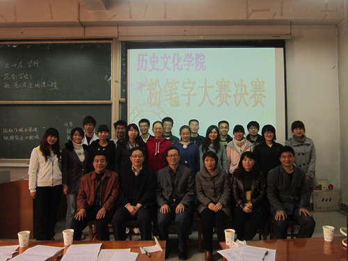 11月12日上午,由工口动漫 学生会学习部承办的“工口动漫 2011年粉笔字大赛”在综合楼105室举行。出席本次比赛的评委有工口动漫 王兆新老师、韩锋老师、王连生老师、李春玲老师、张俊成老师以及书法系老师董家鸿。