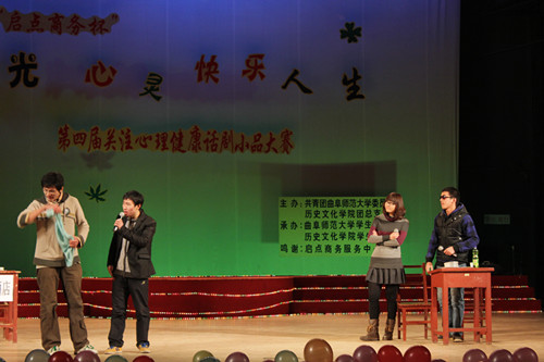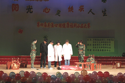 经过初赛、复赛的激烈角逐,共有来自各院系的8支队伍进入决赛。比赛中,选手们针对大学生普遍存在的亲情、友情、爱情等方面的困惑问题以新颖的编排方式、逼真到位的演技和饱满的感情给观众们带来心灵的震撼。《那年花落》浓浓的舐犊情深弥漫全场,让在场观众为之动容; 《我的野蛮舍友》通过讲述发生在男生宿舍的故事,告诉我们青春年少,同窗情谊且行且珍惜;《简单爱》则坚定了我们追求单纯懵懂的爱情信念。此次心理话剧小品大赛还设有抽奖环节和短信微博互动,整场比赛精彩纷呈,高潮迭起,观众掌声不断,在我校2011年十佳歌手徐超同学的一首劲歌中大赛落下帷幕。根据公平公正的原则,本次大赛评选出一、二、三等奖及优秀奖,最佳男女主角奖,最佳导演奖及最佳编剧奖。