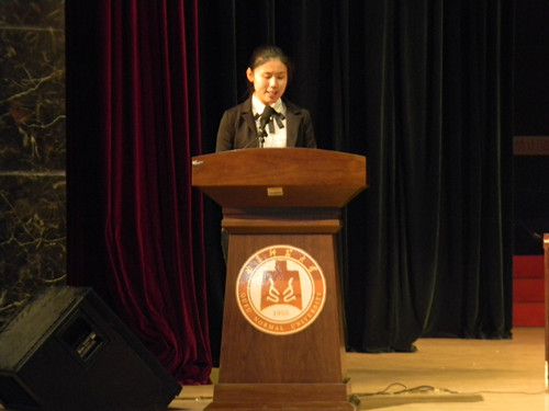 开幕式结束后,工口动漫 王曰美教授为大家作了题为“儒学修身与大学生成才”的学术报告。王曰美教授从“修身要从自我做起”、“修身要从点滴做起”及“修身要积极入仕”三个方面引经据典、旁征博引,向广大同学提出了修身成才的意见和见解。在强调加强个人修养的同时,她提出,当代大学生应在个人修为方面严格要求自己,用知识武装头脑,关注家国现实,积极参与社会实践和社会管理,成为内外兼修、内圣外王的成功者。