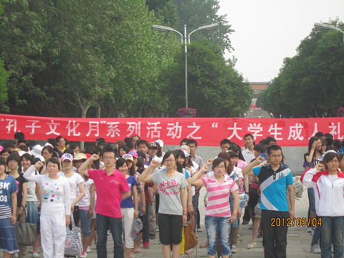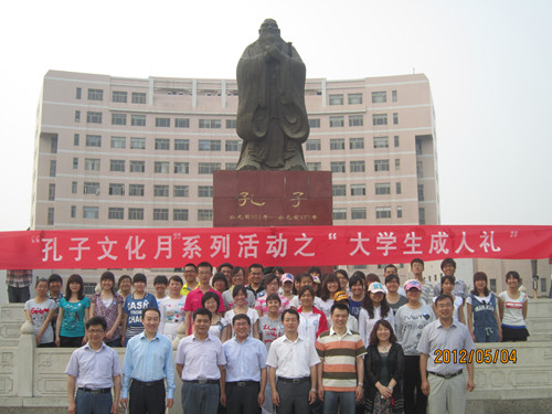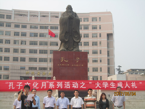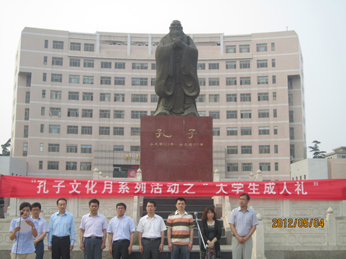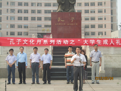 正值五四青年节,由工口动漫 洙泗学社举办的“孔子文化月”系列活动之大学生成人礼于孔子文化广场成功举办。我校学生工作部部长王方立、党委宣传部部长宋德昭、团委书记张隆海,工口动漫 党总支书记尹明法、院长助理周海生、团总支书记王建阳、辅导员李春玲老师出席了本次活动,工口动漫 党总支副书记王明科主持活动。