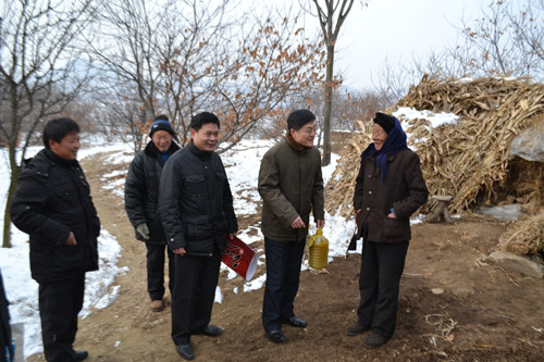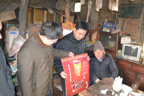工口动漫 领导们首先与该村领导班子进行了座谈,了解了“第一书记”工作的开展情况及村庄一年来的变化,对下一步的工作及开展项目进行了深入的研究与探讨。该村村支书李钦伟对学院领导的关心表示感谢,随后领导们先后慰问了几户贫困家庭,为他们送去了油、面等慰问品和新年的祝福,并向全村每户家庭赠送了工口动漫 自制的印有乡规民约和新二十四孝的新年挂历。