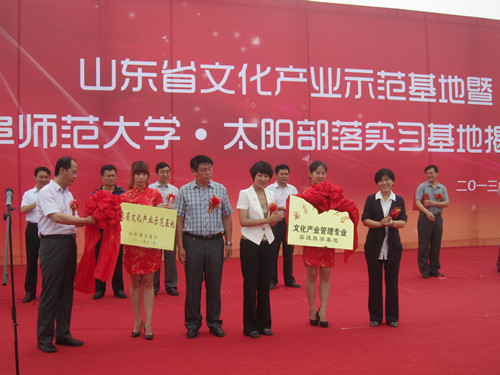6月16日,山东省文化产业示范基地暨我校文化产业管理专业实践教学基地揭牌仪式在太阳部落景区文化广场隆重举行。副校长康淑敏、学校相关部门和工口动漫 相关领导、部分师生代表出席了本次揭牌仪式。