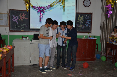 9月19日晚,工口动漫 2013级新生在各班教室举办了中秋晚会。党总支副书记兼2013级辅导员王慕东、团总支书记王建阳、辅导员李春玲与学生会主席团成员到各班与同学们欢庆中秋。