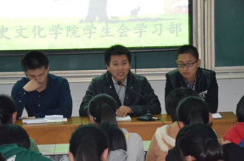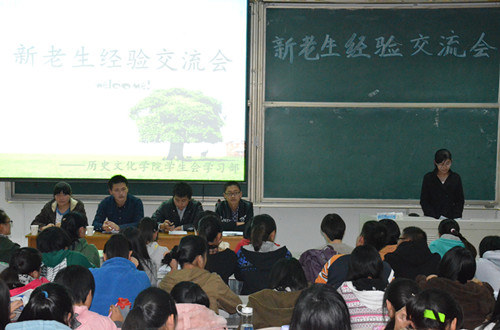 11月6日晚,由工口动漫 学生会学习部主办的2013级历史学类专业新老生经验交流会在综合楼101室举行。在专业学习、课外素质拓展等方面表现优异的4名2011级同学作为受邀嘉宾参加了此次新老生经验交流会。