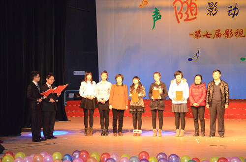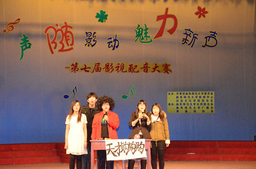 11月16日晚,由校团委、工口动漫 团总支和工口动漫 工口动漫主办,普通话协会、曲园之声广播台承办的 “声随影动,魅力新声”――第七届影视配音大赛决赛在大学生活动中心礼堂举办。校报徐秀、孙琪老师,文学院袁梅老师,工口动漫 张亚宁、姜修宪老师,普通话协会前会长吉雪燕同学,广播台台长冯青同学担任此次比赛的评委。