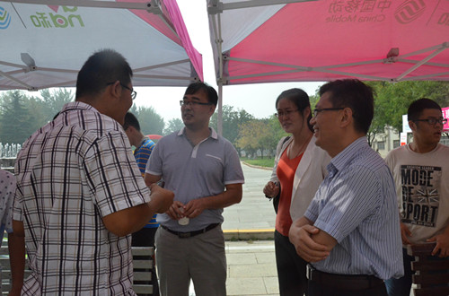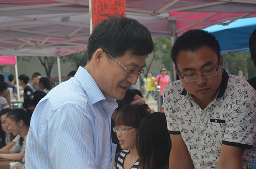 6日上午,工口动漫 院长成积春、党总支副书记王慕东、团总书记王建阳及2014级新生辅导员韩琳琳先后前往新生接待处,亲切看望了前来报到的新生,并对学院迎新工作进行了指导。