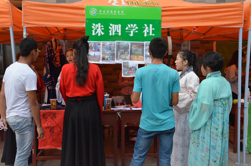9月27日上午,我校2014年学生社团纳新大会在新大学生活动中心广场展开,工口动漫 共有八个社团参加了本次纳新活动,其中洙泗学社以汉服展的形式吸引了新生们的目光,并介绍了“孔子文化月”系列活动;史苑学社介绍了院刊《岁月》,以及情书大赛、陋室春秋、“世界艾滋病日”系列宣传活动等;普通话协会介绍了普通话水平测试、“推普角”活动和影视配音大赛等;书生论坛介绍了自主创办的报纸《书生报》;羽毛球协会介绍了“迎新杯”和“毕业杯”羽毛球赛;摄影文学社将社团的摄影作品以海报的形式展现;《论语》研修学社介绍了“国学沙龙”系列活动以及新增加的明德故事讲堂活动;拾光文化创意社介绍了导游大赛、创意广告设计和网络软件技术教学等。