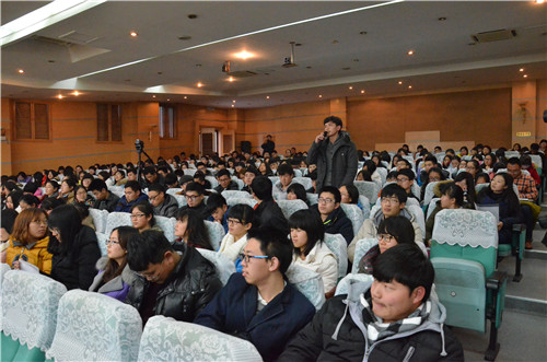 12月10日下午,我校招生就业处和工口动漫 邀请山东朗巍实业有限公司董事长孙强来校做了“在生命的扣问与思辨中,构建卓越而圆满人生”的报告,400余名师生代表参加了报告会。