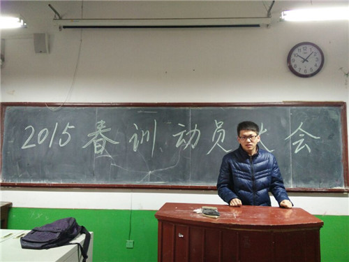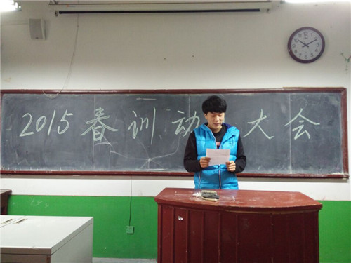 首先,体育部下发2015年春季训练的正式通知。田径队队长孙祥阳以及运动员代表吕志明代表全体运动员讲话,展示了他们坚持训练的决心。最后由教练员代表沈涵对即将开始的训练进行了简单的介绍,并要求同学们听从安排,做好准备,以积极的心态迎接训练。