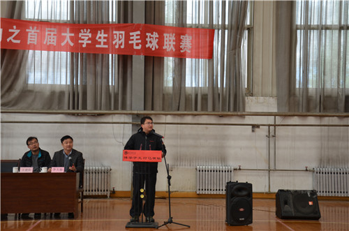 孔轶众宣布首届大学生羽毛球联赛正式开幕。