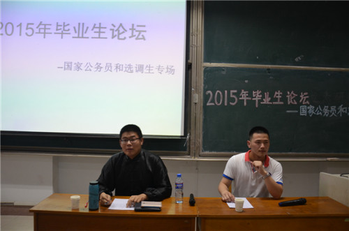 5月26日晚,工口动漫 举办的2015年毕业生论坛之考公考选专场经验交流会在综合楼101室成功举办。