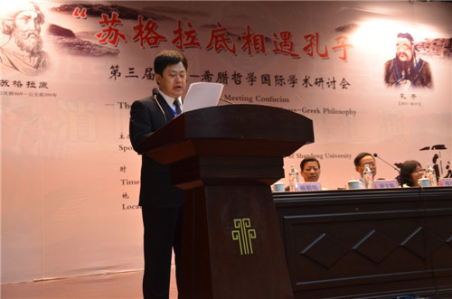 校长戚万学出席会议开幕式并代表学校致辞向莅临会议的各位专家学者表示热烈欢迎,对本次国际学术研讨会的顺利举行表示祝贺。参会学者围绕会议主题“探讨以孔子思想为源头之中国哲学思想,与以苏格拉底思想为源头之西方哲学思想的异同,探索它们在现代社会发展中的时代价值”进行了主题演讲和会议研讨,深入探讨了苏格拉底和孔子的思想起源、中国传统文化传承、跨文化的哲学实践活动应如何变革等问题。