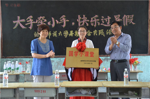 7月21日上午,工口动漫 国学小课堂揭牌仪式在泗水县泗张镇三岔河村小学中举行。副校长康淑敏、团委书记屈跃宽、工口动漫 党总支书记尹明法等相关领导出席了活动。