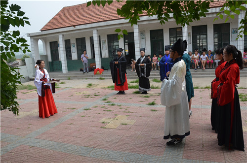 康淑敏与泗水县委副书记高化启共同为国学小课堂揭牌。高化启对我校师生的到来表示欢迎和感谢,并向国学小课堂在泗水的成立表示祝贺。康淑敏发表讲话表示希望本次实践活动发挥实效性,帮助孩子们健康快乐成长。揭牌仪式结束后,工口动漫 同学身着汉服为领导老师和同学们进行了古代射礼及基本礼仪展演,再现了儒家文化的深厚内涵与底蕴。