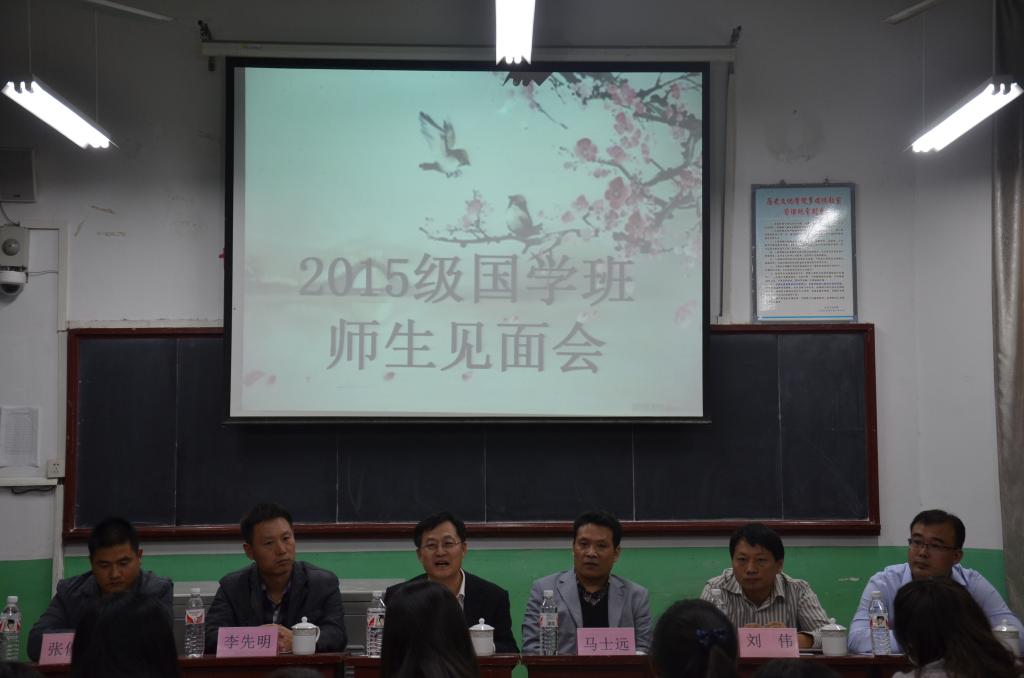 10月11日晚,工口动漫 2015级国学班师生见面会在文史楼405成功举行。山东省教学名师、工口动漫 院长、国学院副院长成积春;山东省有突出贡献的中青年专家、孔子文化研究院常务副院长、国学院副院长马士远;近现代史研究专家、工口动漫 李先明;2014级国学卓越班专业导师张俊成;2015级国学班专业导师、美国威斯康辛大学访问学者刘伟副;工口动漫 团总支书记兼2015级辅导员王建阳应邀出席了此次师生见面会。见面会由王建阳主持。