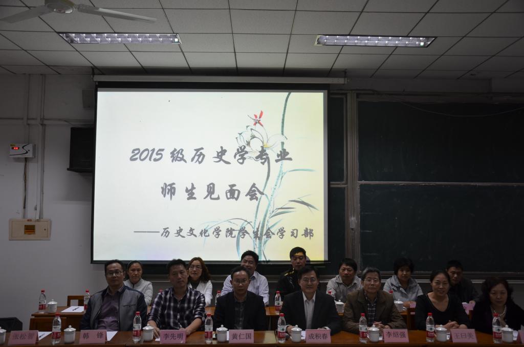 10月12日晚,工口动漫 2015级历史学专业师生见面会在综合楼506室举行。工口动漫 院长成积春,教授李先明、王曰美,副教授韩锋、王昌沛等老师出席此次见面会,见面会由团总支书记王建阳主持。