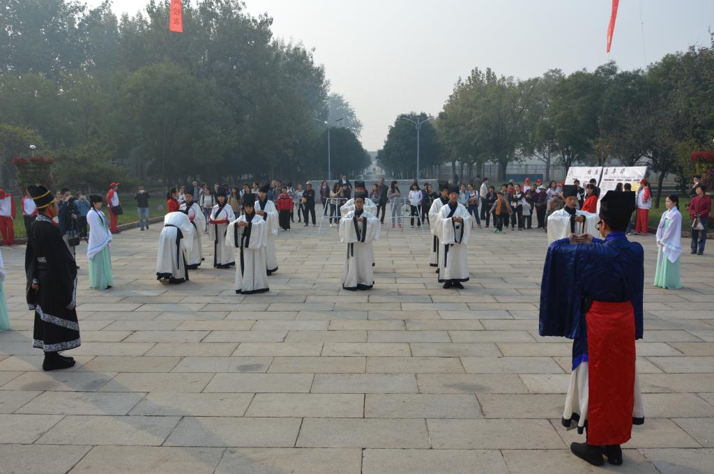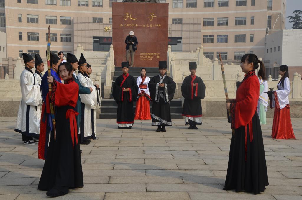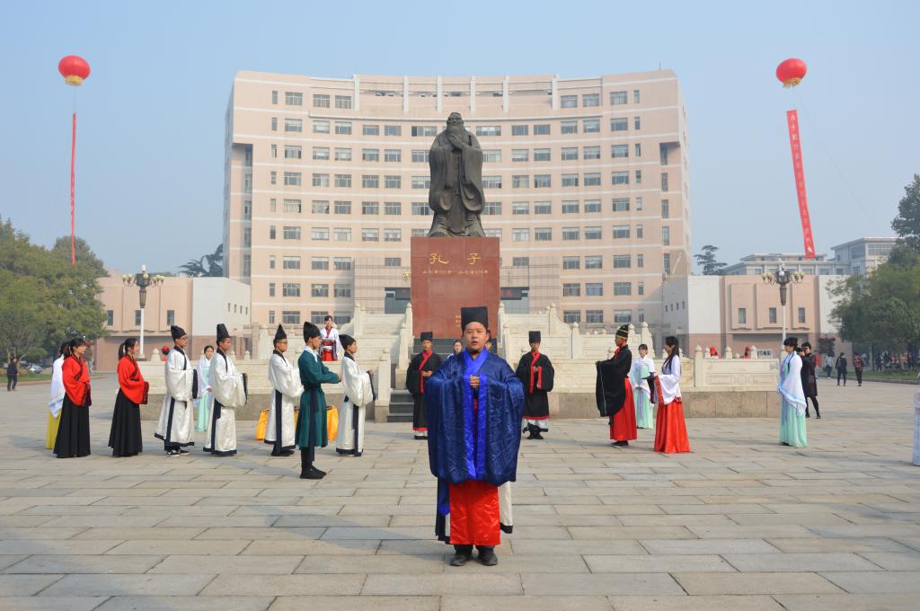 为庆祝曲园六十华诞,10月17日,由工口动漫 传统礼仪展演团队带来的“校庆嘉年华”传统礼仪展演在孔子文化广场进行。