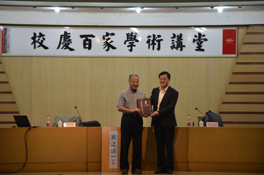 崔之清以“近期台湾政局”和“当前两岸关系”为主题,从“台湾近期选情”、“2016年选举结果预期”、“两岸关系现状”等六个方面进行详细讲解。他结合时事政治穿插历史故事对当前台湾选情并提出选后台湾政局走向及两岸关系变化进行分析。他主张不管如今台湾政局如何,我们都应该深切思考,积极应对。李先明对此次报告进行了简单总结。整场报告气氛活跃,同学们热情高涨,踊跃提问。崔之清详尽地回答了同学们的问题。 崔之清,南京大学台湾研究所所长,中华民国史研究中心副主任,教授,博士生导师,历史学硕士,中共中央台办海峡两岸关系研究中心特约研究员、中国太平天国史研究会副会长兼秘书长、江苏省政府参事、江苏省历史学会副会长、江苏省台湾研究中心特约研究员。