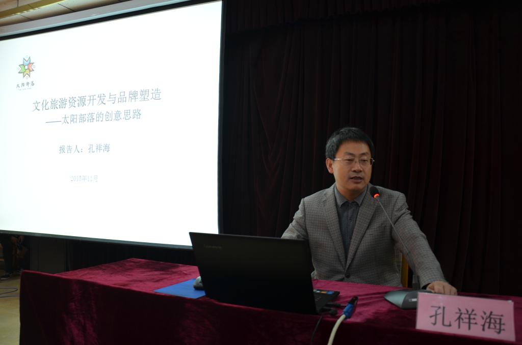 11月2日上午,我院在科技楼二楼南会议室举办孔祥海兼职教授聘任仪式暨学术报告会。山东龙岳创业投资有限公司、山东省文化产业示范基地泰安太阳部落旅游区总经理孔祥海先生受聘为我校兼职教授,并做了题为“文化旅游资源开发与品牌塑造”的学术报告。我院党总支尹明法书记、院长成积春教授、党总支王慕东副书记、教师教师代表以及文化产业管理、文物与博物学、国学、国际政治等专业本科生近200人参加会议。