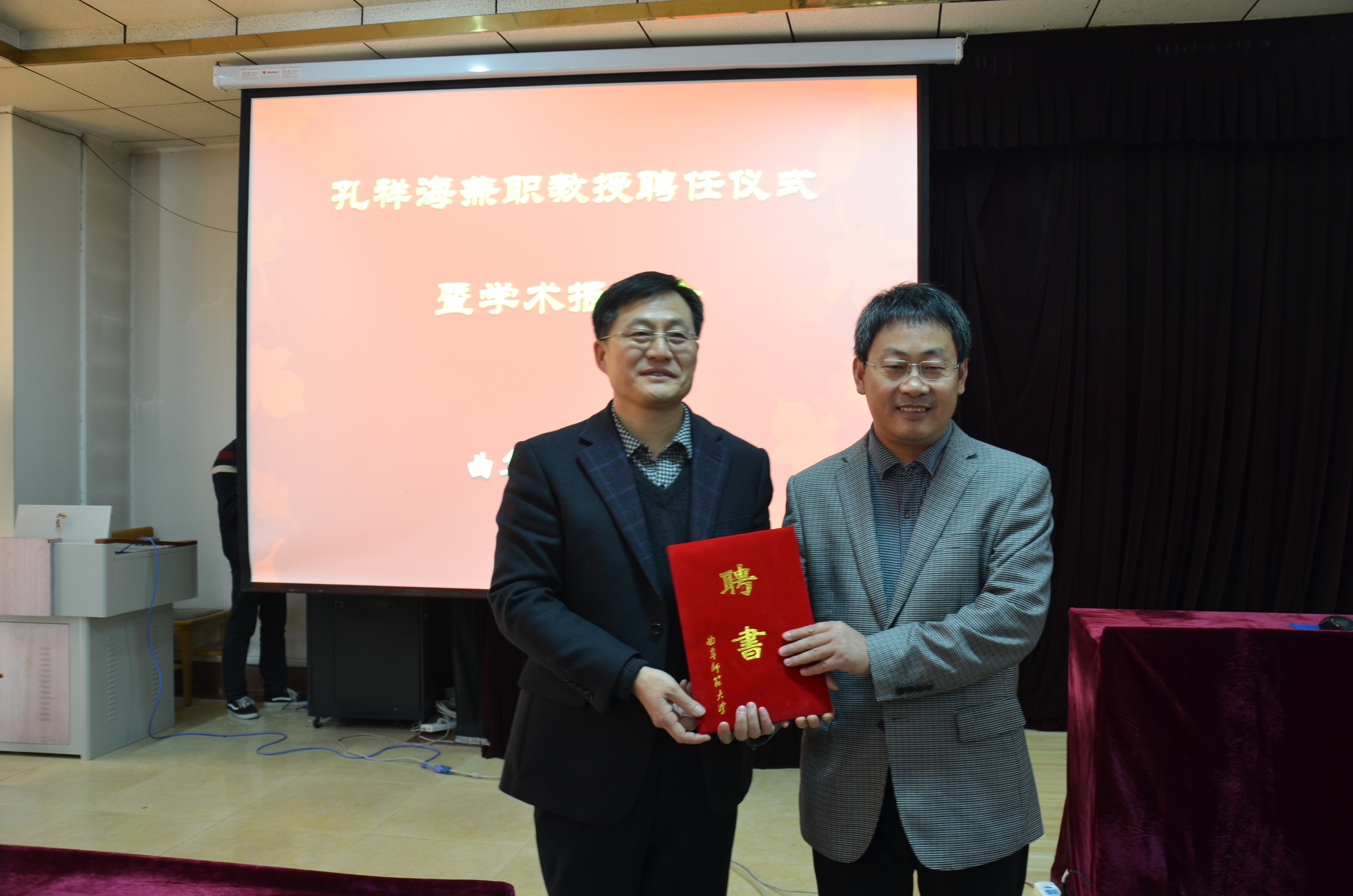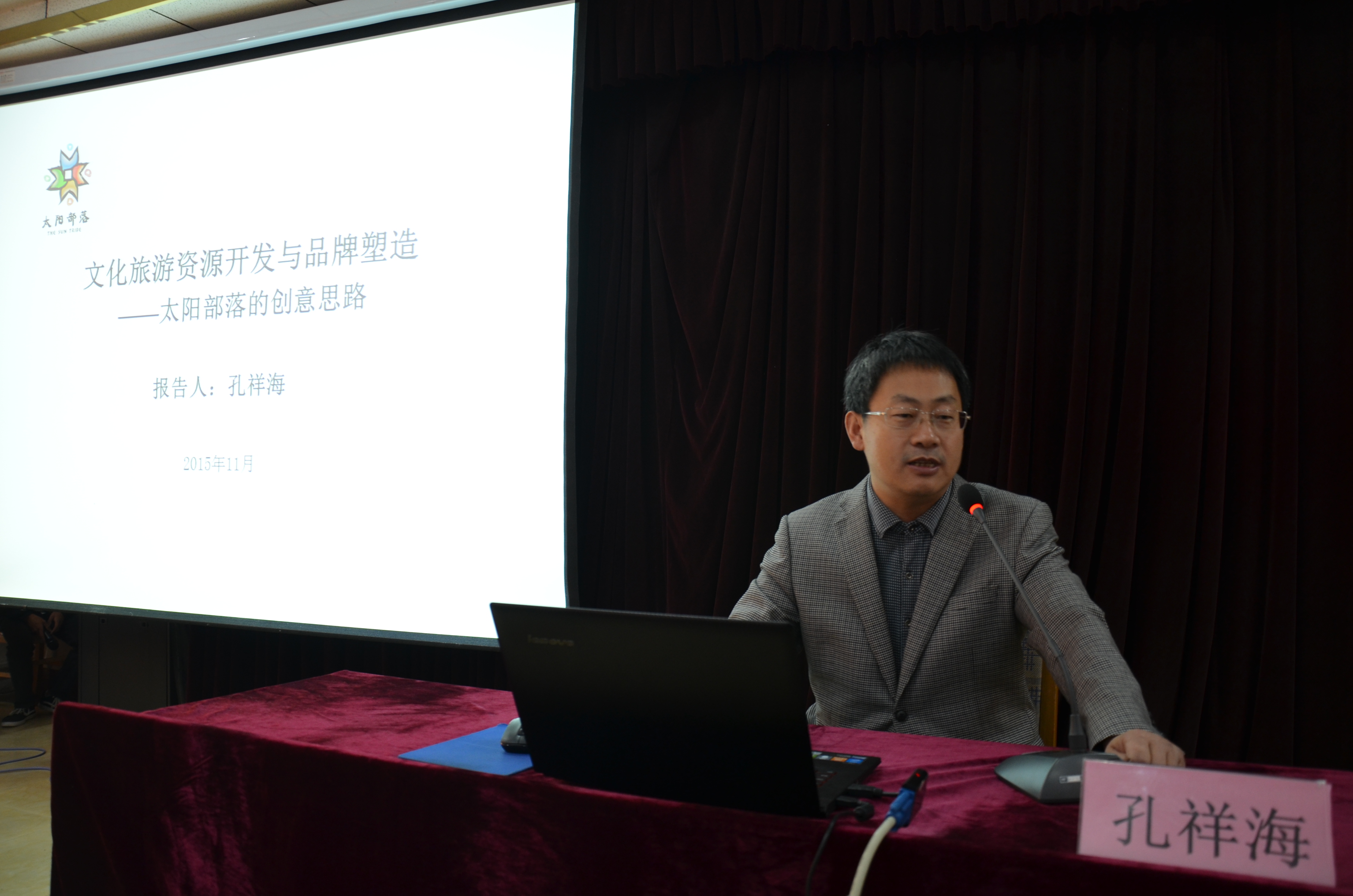 11月2日上午,工口动漫 在科技楼二楼南会议室举办孔祥海兼职教授聘任仪式暨学术报告会。山东龙岳创业投资有限公司、山东省文化产业示范基地泰安太阳部落旅游区总经理孔祥海先生受聘为我校兼职教授,并做了题为“文化旅游资源开发与品牌塑造”的学术报告。工口动漫 党总支尹明法书记、院长成积春教授、党总支王慕东副书记、教师教师代表以及文化产业管理、文物与博物学、国学、国际政治等专业本科生近200人参加会议。