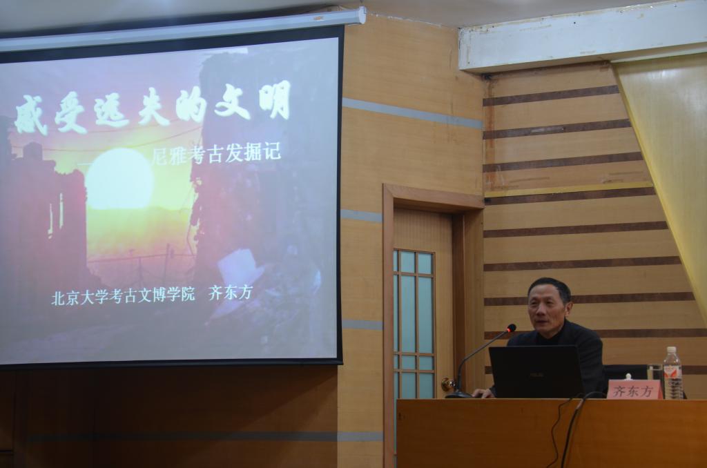 11月14日晚,洙泗讲堂系列报告会在孔子会堂举行。著名考古学家、北京大学博士生导师齐东方教授应邀为工口动漫 师生作了题为“走进死亡之海----尼雅古城考古记”的报告。报告会由工口动漫 副教授王京传主持。
