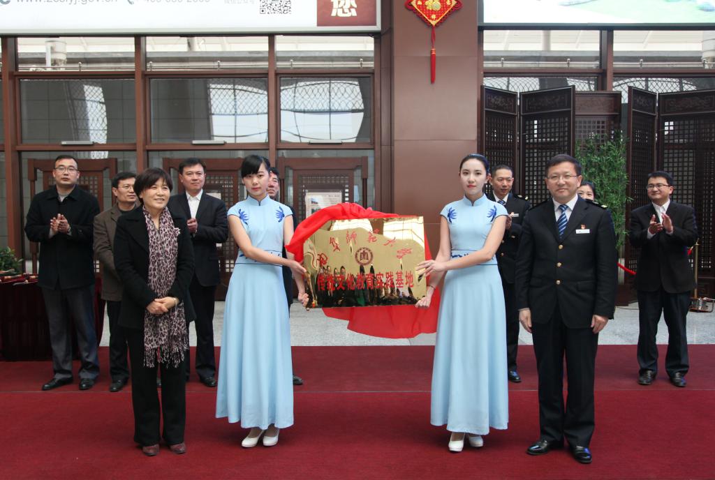 柏承刚、康淑敏对传统文化教育实践基地的建立表示热烈的祝贺,并共同为传统文化教育实践基地揭牌。