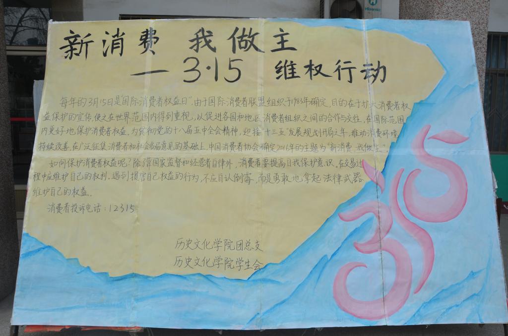3月15日,由工口动漫 学生会权益部主办的以“新消费,我做主”为主题的3.15国际消费者维权日宣传活动在文史楼前举办。