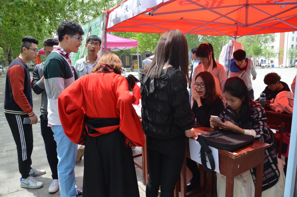 活动期间,孔子文化使者向来往行人介绍“最美汉服代言人”的相关事宜,并让报名同学身穿汉服拍照留念。活动现场气氛热烈,共有70余人报名参赛。