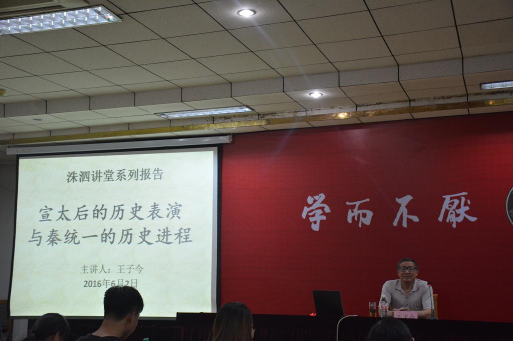 6月2日晚,洙泗讲堂系列报告在科技实验大楼二楼南会议室举行。中国人民大学国学院王子今教授为我们做了题为“宣太后的历史表演与秦统一的历史进程”的报告。工口动漫 院长成积春教授主持了报告。