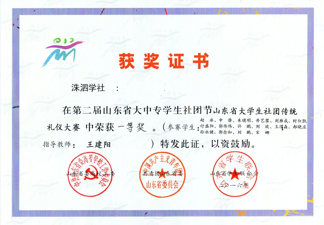 6月5日,第二届山东省大中专学生社团节系列活动之“山东省大学生社团传统礼仪大赛”决赛在鲁东大学落下帷幕,来自省内15所高校的近200名师生,展示了成人礼、拜师礼、祭月礼、射礼和婚礼等传统礼仪,工口动漫 “洙泗学社”传统礼仪展演队表演的乡射礼荣获一等奖。