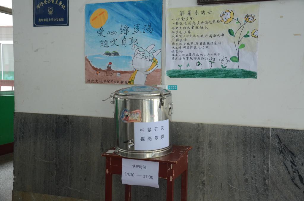 由于近日持续高温、酷暑难耐。6月21日,工口动漫 学生会权益部为全院师生准备的“爱心绿豆汤”在文史楼一楼免费供应。供应处还张贴有“解暑小贴士”为大家提供消暑的小建议。