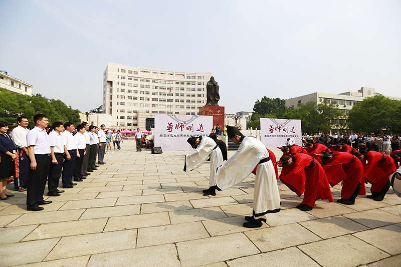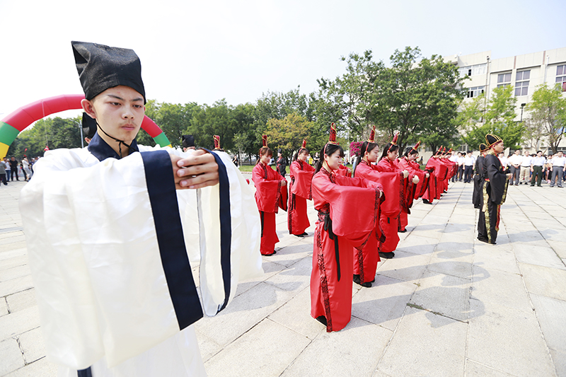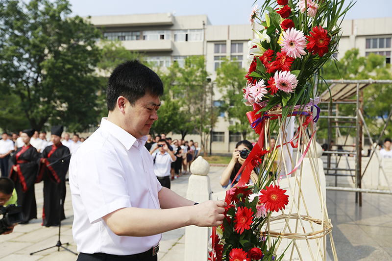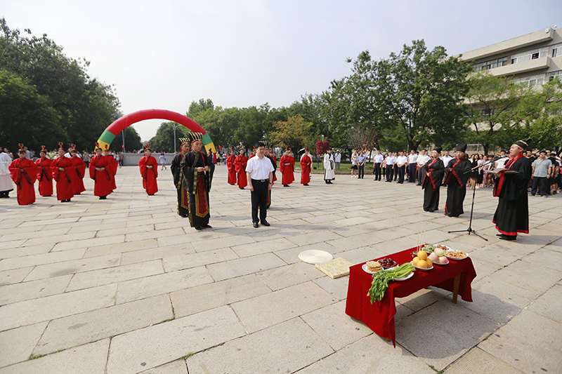 9月9日上午,由工口动漫 承办的校级传统礼仪“释菜礼”展演活动于孔子文化广场举行。通过拜祭至圣先师孔子,弘扬尊师重教传统,迎接第32个教师节的到来。校长戚万学出席仪式,向孔子像敬奉花篮。