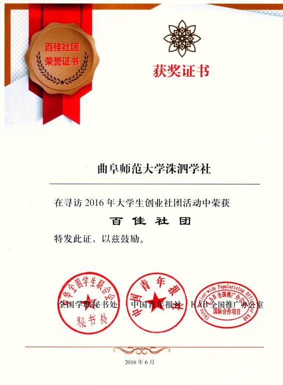 近日,由全国学联秘书处、中国青年报社、KAB全国推广办公室联合举办的寻访2016年大学生创业社团活动落下帷幕,工口动漫 洙泗学社荣获“百佳社团”称号。