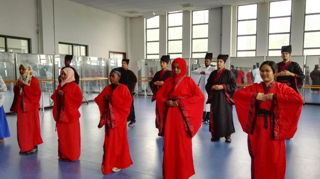 来自苏丹、津巴布韦、韩国、哈萨克斯坦等10余个国家留学生与工口动漫 学子进行面对面的交流,留学生表达出对汉服及中国传统礼仪热忱,工口动漫 学子对汉服及传统礼仪做了详细的介绍并进行了示范。活动最后留学生穿上汉服,亲身体验传统文化。