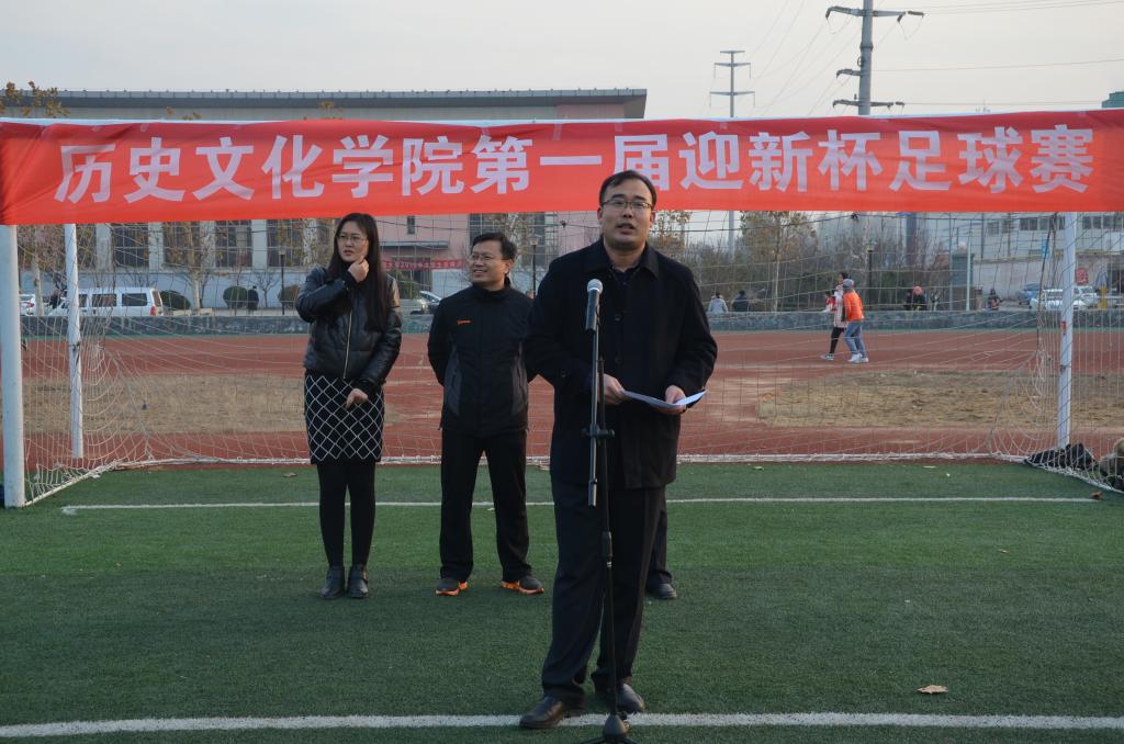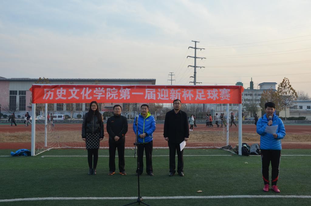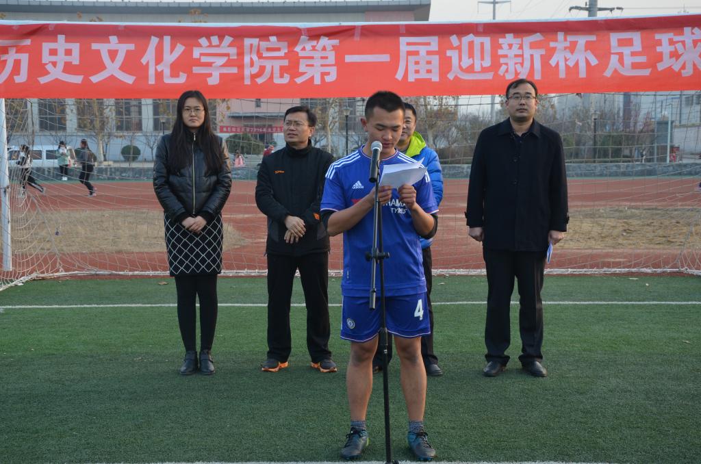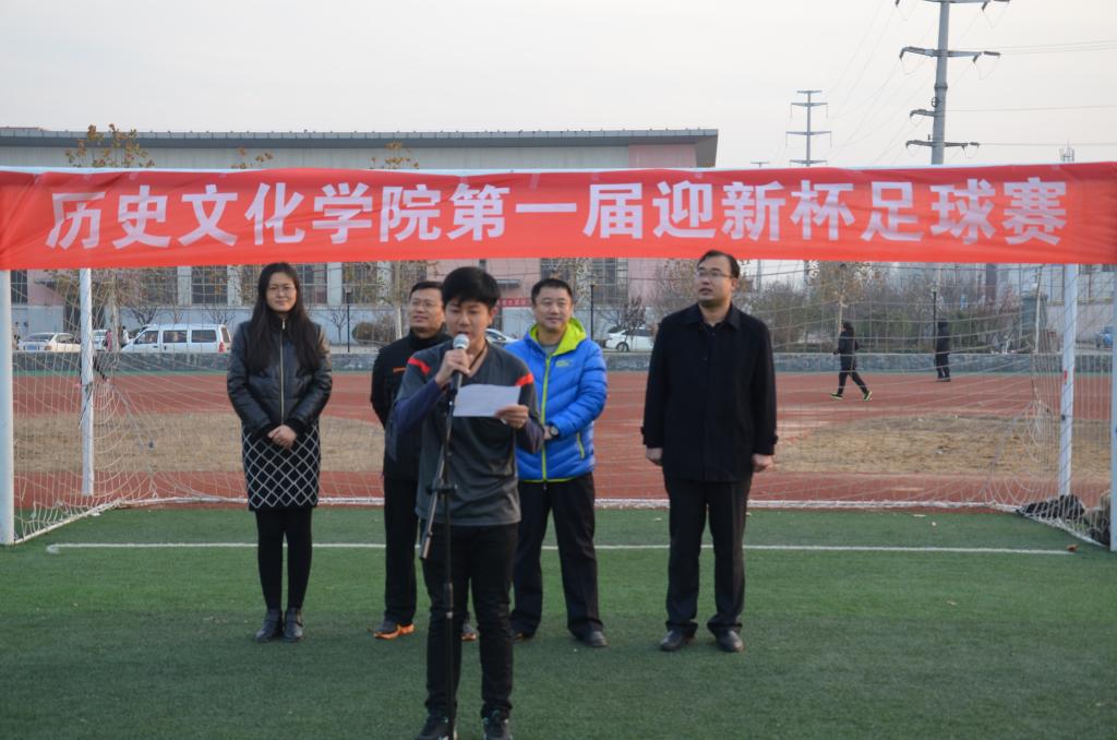 11月25日下午,工口动漫 第一届“迎新杯”足球赛在西操场拉开帷幕。体育教学部副主任李大新,工口动漫 党委副书记王慕东,团委书记王建阳,副教授刘伟和2014级辅导员韩琳琳出席了开幕式。 开幕式上,王建阳致开幕词,他鼓励同学们多参与体育锻炼增强体质并预祝足球赛圆满成功。2015级钟扬和2014级申潜分别代表运动员和裁判员进行宣誓。李大新宣布比赛正式开幕。 据悉,此次比赛将分为小组赛和淘汰赛两个阶段,共有来自工口动漫 2014级、2015级和2016级的男女各6支队伍将在未来的两周内展开精彩角逐。