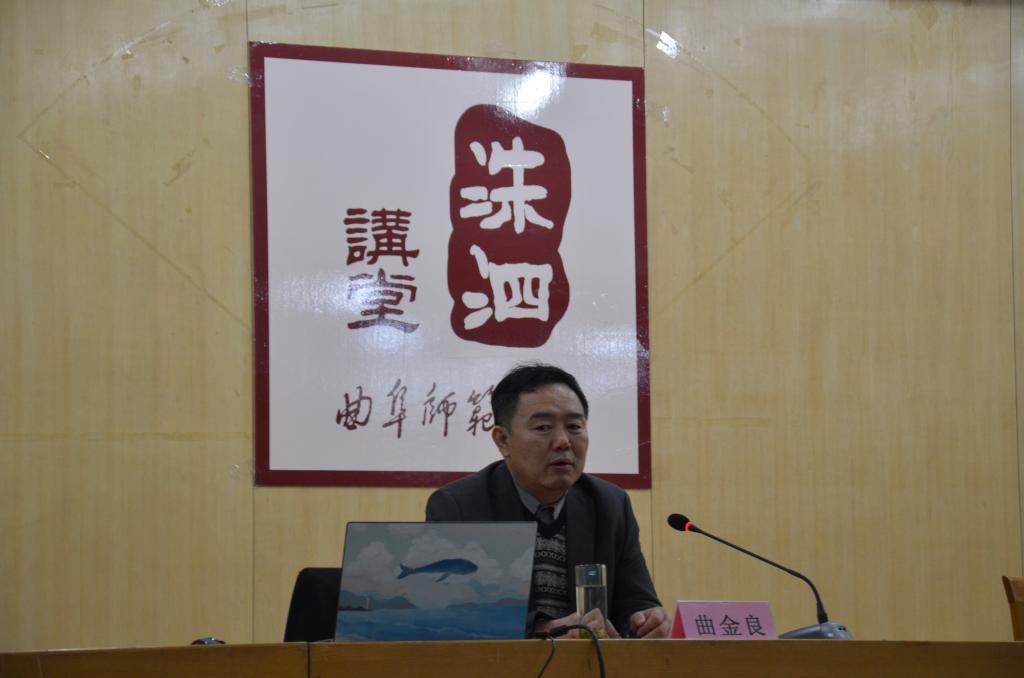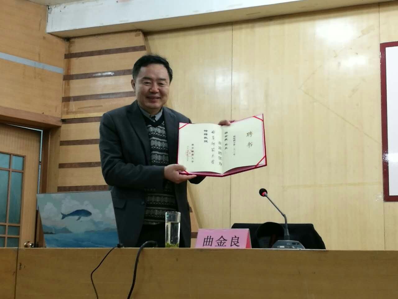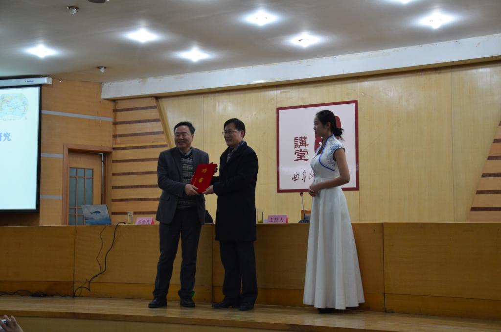 12月14日晚,洙泗讲堂系列报告会在孔子会堂举行。我国著名海洋文化研究专家,中国海洋大学文学与新闻传播学院教授、博士生导师曲金良受聘为我校特聘教授并为工口动漫 师生作了题为“海洋文化遗产与海洋文化产业发展研究”的报告。报告由工口动漫 副院长李建主持。工口动漫 院长成积春出席此次报告并为曲金良颁发聘书。 曲金良以海洋污染的严峻性为切入点,从“海洋时代”、“海洋生态文明”、“中国海洋文化遗产”、“海洋文化产业发展”四个方面进行讲解,以幽默的语言,充沛的感情阐述了对海洋文化、海洋文化遗产的保护和利用。他结合地图、历史以及统计数据指出我国应重视传统海洋物质遗产的保护并提出中国海洋生态文化发展的应有战略对策。最后,曲金良对在场同学们的提问作了耐心解答并为他们签名。