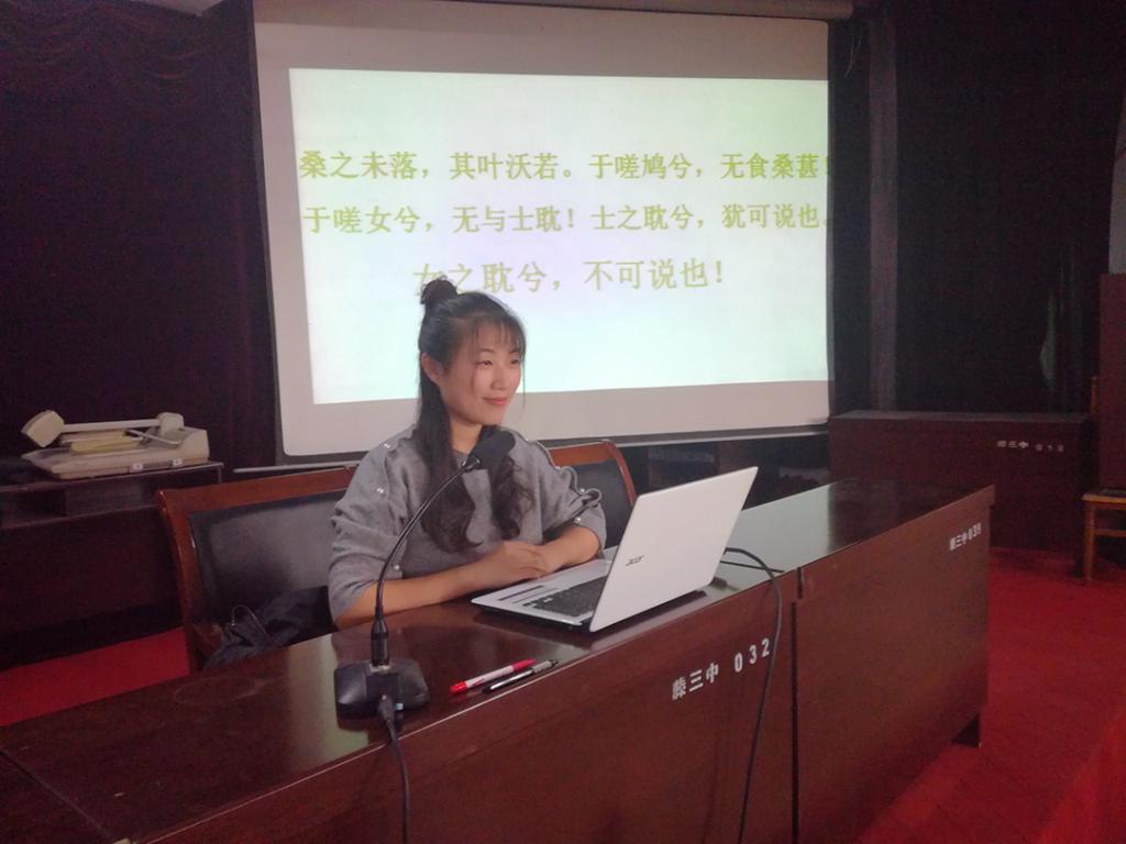 高子期从个人安全教育、健康交往教育和青春期知识教育三个方面入手,增强女生的自我保护意识,提高他们的安全自护能力。报告期间,高子期灵活运用国学知识,引用诗经“桑之未落,其叶沃若。于嗟鸠兮!无食桑葚。于嗟女兮!无与士耽。士之耽兮。犹可说也。女之耽兮,不可说也。”引导女生正确处理男女交往问题。报告赢得学生阵阵掌声。