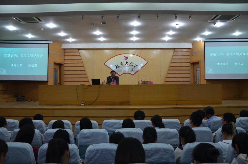 4月23日晚,洙泗讲堂2017年第5期(校友大讲堂第六讲)在孔子会堂举行。徐松岩教授为工口动漫 师生作了题为“穿越古典——爱琴文明实地考察见闻录”的报告,由工口动漫 王昌沛教授主持。