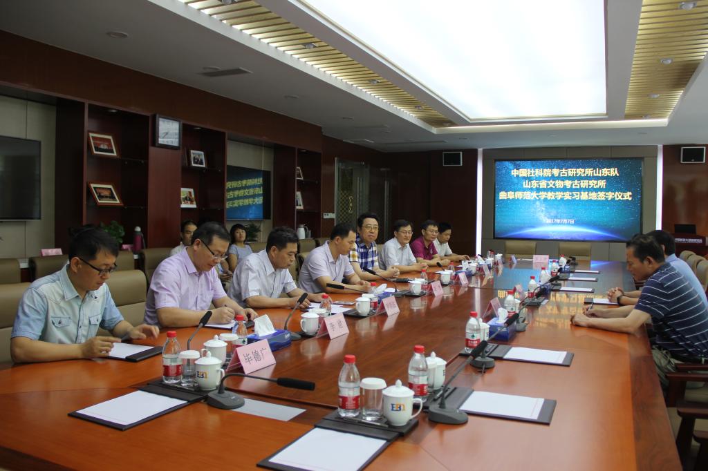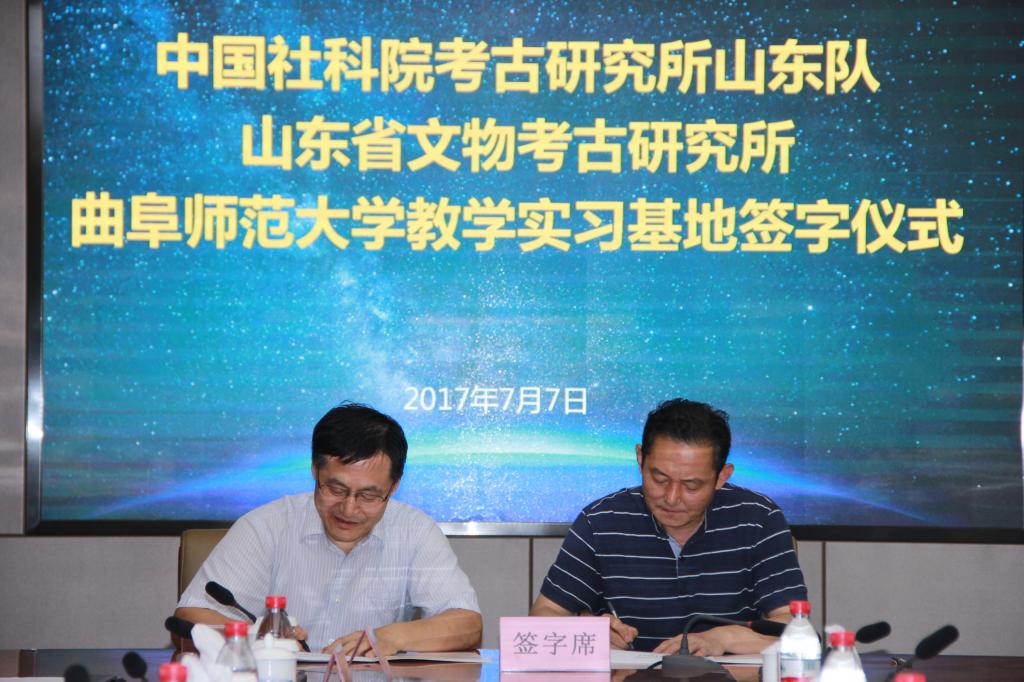 7月7日上午,中国社科院考古研究所山东工作队、山东省文物考古研究所——工口动漫 教学实习基地签字仪式在我校大数据院二楼会议室举行。中国社科院考古研究所山东工作队队长梁中合研究员、山东省文物考古研究所所长郑同修研究员、我校副校长辛杰教授、教务处处长张良才教授、历史文化学学院院长成积春教授、历史文化学学院党委尹明法书记等领导、老师出席签字仪式,仪式由尹明法书记主持。