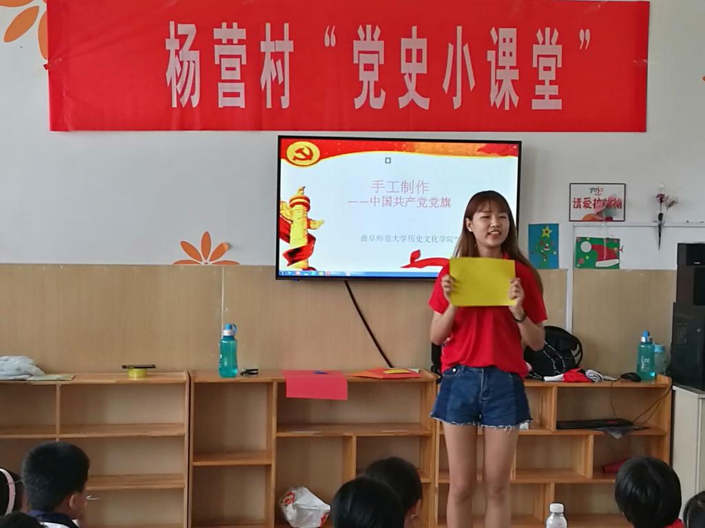 杨营镇党委副书记、镇长高峰致欢迎词,吕厚轩和杨营县委组织科科长刘鹏分别发表讲话。随后,王建阳与杨营团县委书记王洋共同为“党史小课堂”揭牌。活动中,杨营村的小学生合唱《共产主义儿童团团歌》,工口动漫 儒家齐鲁文化行志愿者为村民们带来主题为“着汉家衣裳,扬洙泗遗风”的汉服展演。